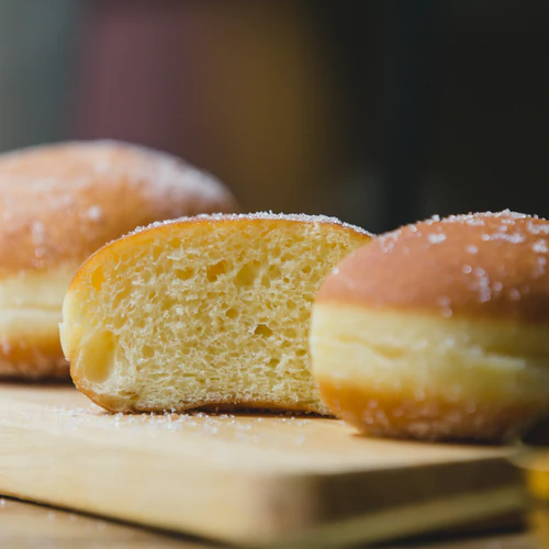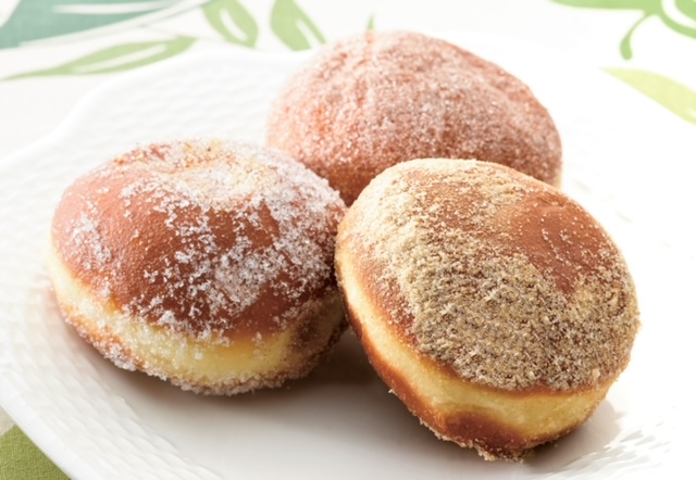 生地は冷凍で納品され、調理は 解凍→発酵→揚げ→砂糖まぶし です。